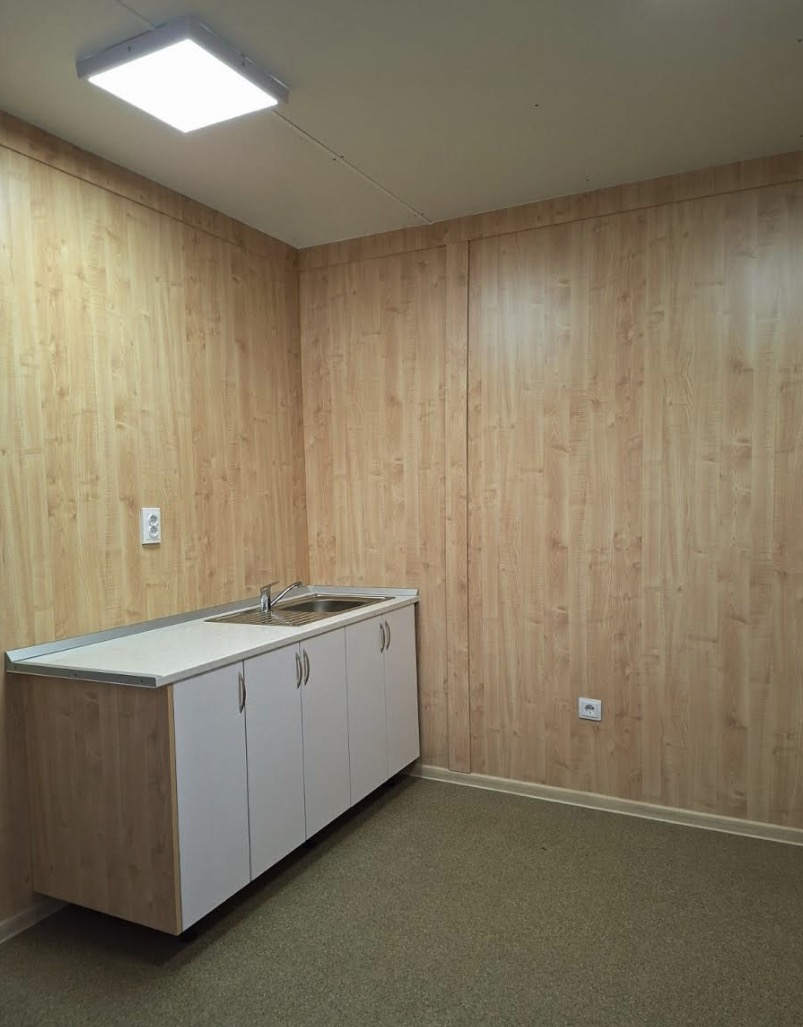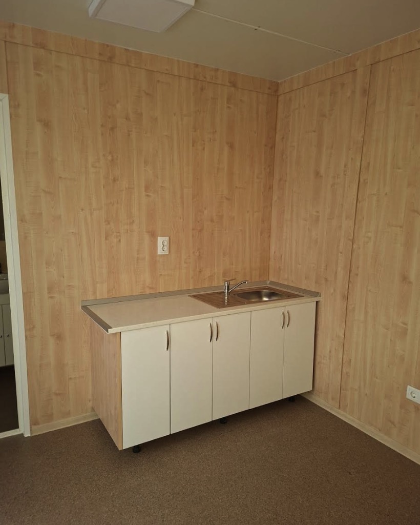 Container modular locuibil 7×3 m, cu baie, bucătărie și dormitor — o locuință modulară completă, gata de mutare. Construit pe structură autoportantă din oțel laminat S235JR, cu izolație termică din vată minerală 100 mm și finisaje interioare din PAL melaminat. Soluție turnkey pentru casă modulară, cabină de vacanță, locuință temporară sau container dormitor pe șantier.